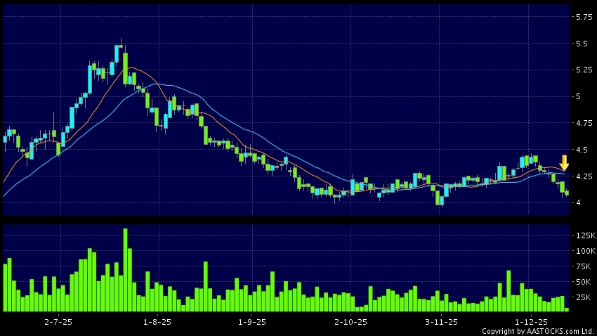 Death cross is a bearish signal, which the short term SMA crosses below long term SMA, such as SMA 50 crosses below SMA 250. Investor should watch closely.(HK stocks quote is delayed for at least 15 mins.Short Selling Data as at 2025-12-12 16:25.)