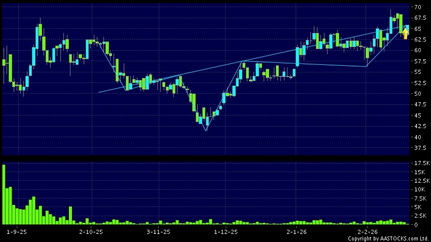 Disclaimer:The information, financial market data, quotes, charts, statistics and / or various technical analysis indicators are automatically generated based on the analyses and interpretations of publicly available information and should be used as references only at your own discretion. Such automatically generated content does not reflect the views or opinions of AASTOCKS.com Limited nor does AASTOCKS.com Limited make any guarantees to their accuracy, completeness, timeliness or correctness. You are advised to consult independent professional advice to verify pricing information or to obtain more detailed market information. Any uses of information or trades executed following the said automatically generated content are taken at your own risk for your own account.