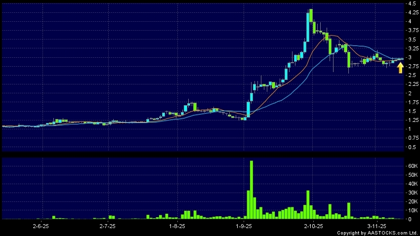 Disclaimer:The information, financial market data, quotes, charts, statistics and / or various technical analysis indicators are automatically generated based on the analyses and interpretations of publicly available information and should be used as references only at your own discretion. Such automatically generated content does not reflect the views or opinions of AASTOCKS.com Limited nor does AASTOCKS.com Limited make any guarantees to their accuracy, completeness, timeliness or correctness. You are advised to consult independent professional advice to verify pricing information or to obtain more detailed market information. Any uses of information or trades executed following the said automatically generated content are taken at your own risk for your own account.