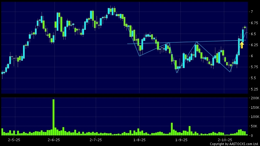 Head Shoulders bottom is a typical bullish signal, when stock price breaks the resistant level, uptrend would possibly start.(HK stocks quote is delayed for at least 15 mins.Short Selling Data as at 2025-10-20 12:25.)