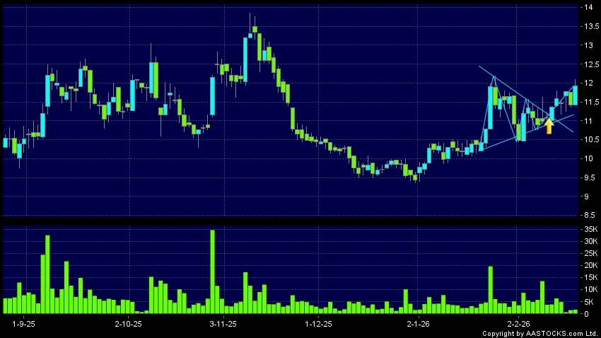 Triangle Breakout means the volatility of price movement is decreasing, stock price finally broke the top of triangle. An upward trend will start.(HK stocks quote is delayed for at least 15 mins.Short Selling Data as at 2026-03-03 16:25.)