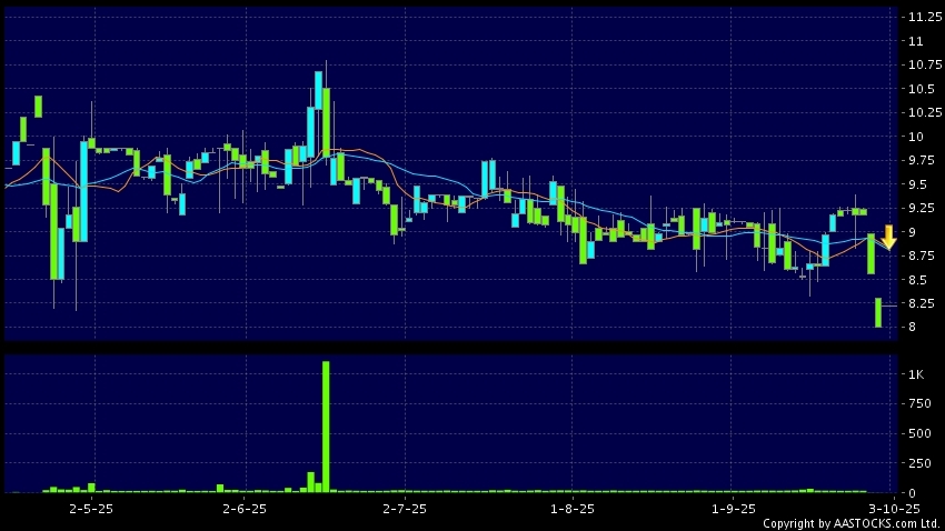 Disclaimer:The information, financial market data, quotes, charts, statistics and / or various technical analysis indicators are automatically generated based on the analyses and interpretations of publicly available information and should be used as references only at your own discretion. Such automatically generated content does not reflect the views or opinions of AASTOCKS.com Limited nor does AASTOCKS.com Limited make any guarantees to their accuracy, completeness, timeliness or correctness. You are advised to consult independent professional advice to verify pricing information or to obtain more detailed market information. Any uses of information or trades executed following the said automatically generated content are taken at your own risk for your own account.