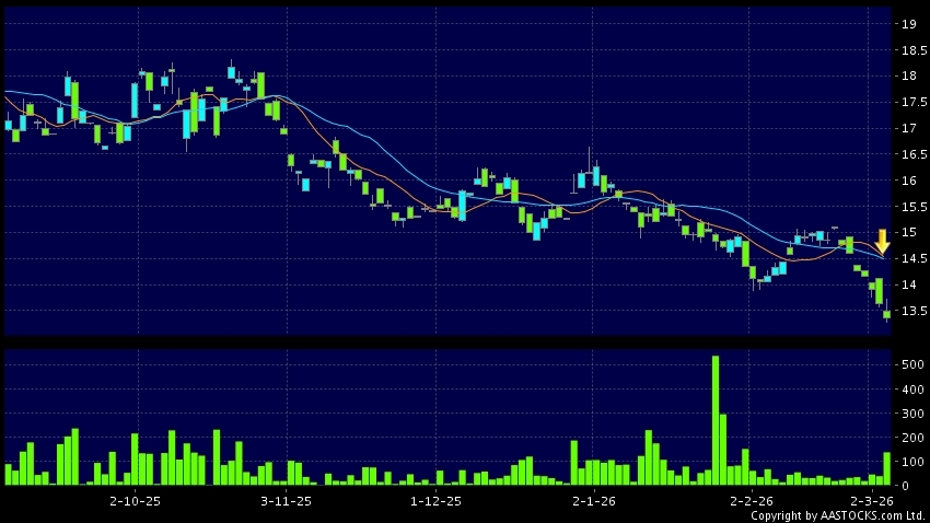 Death cross is a bearish signal, which the short term SMA crosses below long term SMA, such as SMA 50 crosses below SMA 250. Investor should watch closely.(HK stocks quote is delayed for at least 15 mins.Short Selling Data as at 2026-03-04 16:25.)