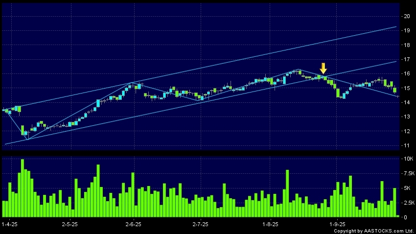 区域突破指股价在过去的一段时间只在一个范围在内活动,然後股价下跌作出突破,跌穿区域的底部,技术走势偏软。(港股报价延迟最少十五分钟。沽空资料截至 2025-10-10 16:25。)