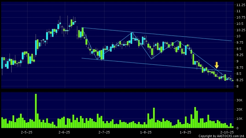 区域突破指股价在过去的一段时间只在一个范围在内活动,然後股价下跌作出突破,跌穿区域的底部,技术走势偏软。(港股报价延迟最少十五分钟。沽空资料截至 2025-10-10 16:25。)