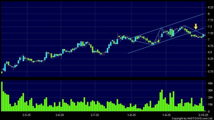 区域突破指股价在过去的一段时间只在一个范围在内活动,然後股价下跌作出突破,跌穿区域的底部,技术走势偏软。(港股报价延迟最少十五分钟。沽空资料截至 2025-10-10 16:25。)