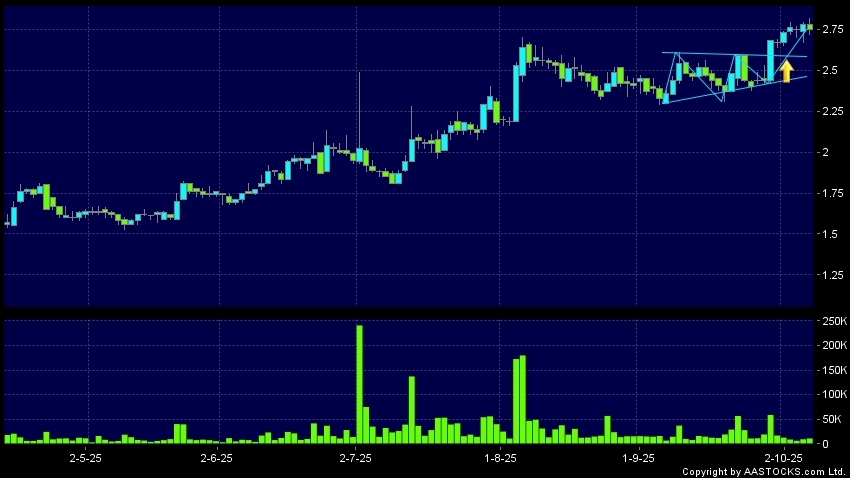 三角形向上突破是指股价的波幅渐渐收窄,在图表上形成三角形般的状态。股价在三角形的末端向上突破,形成上升趋势,技术走势向好。(港股报价延迟最少十五分钟。沽空资料截至 2025-10-10 16:25。)
