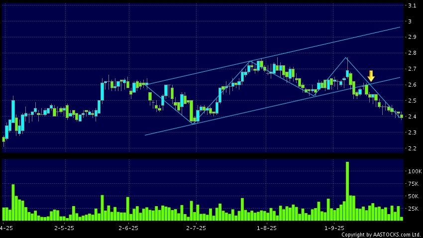 区域突破指股价在过去的一段时间只在一个范围在内活动,然後股价下跌作出突破,跌穿区域的底部,技术走势偏软。(港股报价延迟最少十五分钟。沽空资料截至 2025-10-10 16:25。)