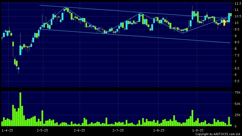 区域突破指股价在过去的一段时间只在一个范围在内活动,然後股价上升作出突破,升穿区域的顶部,技术走势向好。(港股报价延迟最少十五分钟。沽空资料截至 2025-10-10 16:25。)