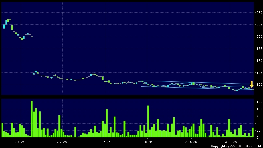 区域突破指股价在过去的一段时间只在一个范围在内活动,然後股价下跌作出突破,跌穿区域的底部,技术走势偏软。(港股报价延迟最少十五分钟。沽空资料截至 2025-11-21 16:25。)
