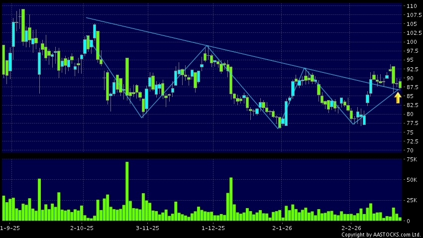 头肩底是典型的利好讯号,当股价升穿阻力线时,升势确认股价将持续上升,技术走势向好。(港股报价延迟最少十五分钟。沽空资料截至 2026-02-26 16:25。)