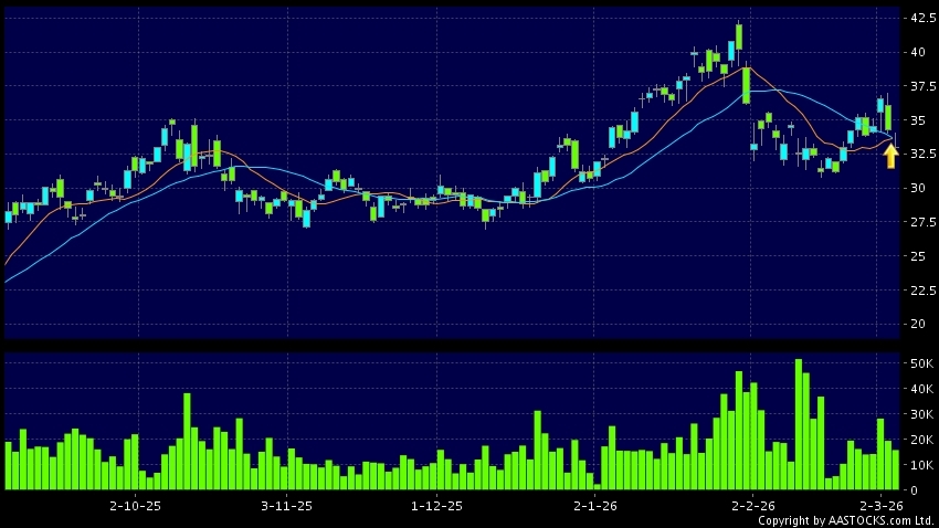 黄金交叉是一个利好讯号,指股价的短期移动平均线升穿长期移动平均线,例如50天线升穿250天线,在图表上构成交叉的形状。股价通常会上升形成一个上升趋势,技术走势向好。(港股报价延迟最少十五分钟。沽空资料截至 2026-03-04 16:25。)