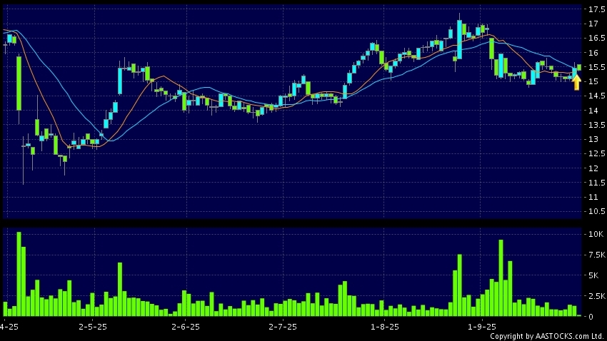 九兴控股(01836.HK) -0.020 (-0.127%) 沽空 $3.48百万; 比率 21.390% 10天移动平均线升穿20天移动平均线,出现黄金交叉。现价报15.400,下跌0.388%,成交量18.40万股,成交额2.83百万。