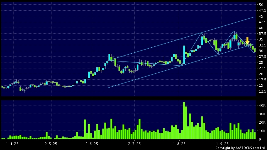 区域突破指股价在过去的一段时间只在一个范围在内活动,然後股价下跌作出突破,跌穿区域的底部,技术走势偏软。(港股报价延迟最少十五分钟。沽空资料截至 2025-10-10 12:25。)