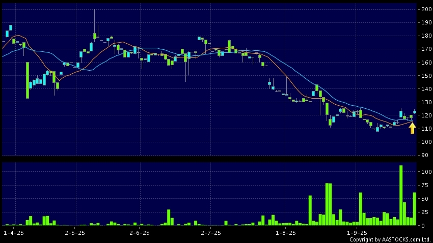 黄金交叉是一个利好讯号,指股价的短期移动平均线升穿长期移动平均线,例如50天线升穿250天线,在图表上构成交叉的形状。股价通常会上升形成一个上升趋势,技术走势向好。(港股报价延迟最少十五分钟。沽空资料截至 2025-10-10 16:25。)