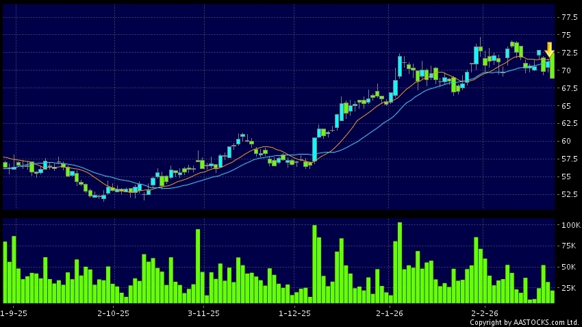 免责声明:以上金融市场数据丶报价丶图表 及/或各种技术分析指标乃根据公开资料分析和演释自动生成的,仅作参考使用。此类自动生成的内容并不代表AASTOCKS.com Limited的立场。AASTOCKS.com Limited并不保证其准确性丶完整性丶实时性或者正确性。阁下应谘询独立专业意见,以核实定价资料或获取更详细的市场信息及须为所有跟随此类自动生成的内容执行的交易或使用该内容负责。