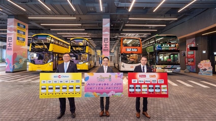 新地代理執行董事陳漢麟表示,西沙灣交通交匯處及候車室將於12月1日正式啟用,面積逾4.6萬平方呎,11條巴士線會陸續提供服務,現有287、581及 582號巴士路線的總站,將由GO PARK伸延至西沙灣交通交匯處。