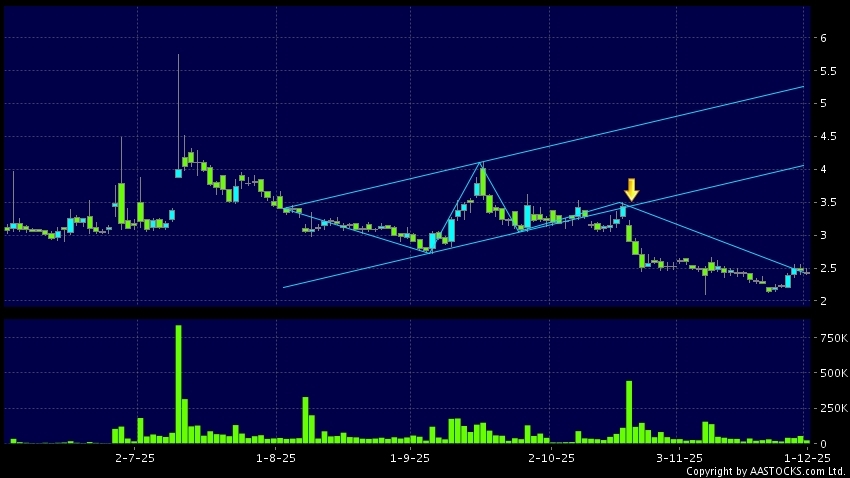 區域突破指股價在過去的一段時間只在一個範圍在內活動,然後股價下跌作出突破,跌穿區域的底部,技術走勢偏軟。(港股報價延遲最少十五分鐘。沽空資料截至 2025-12-01 12:25。)