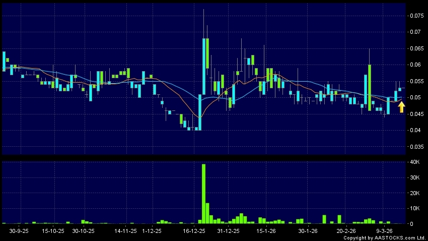 植華集團(01842.HK)  +0.002 (+4.762%)   10天移動平均線升穿20天移動平均線,出現黃金交叉。現價報0.054,上升1.887%,成交量8.00千股,成交額432.00。
