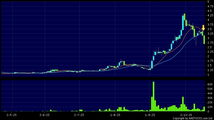 免責聲明:以上金融市場數據、報價、圖表 及/或各種技術分析指標乃根據公開資料分析和演釋自動生成的,僅作參考使用。此類自動生成的內容並不代表AASTOCKS.com Limited的立場。AASTOCKS.com Limited並不保證其準確性、完整性、實時性或者正確性。閣下應諮詢獨立專業意見,以核實定價資料或獲取更詳細的市場信息及須為所有跟隨此類自動生成的內容執行的交易或使用該內容負責。