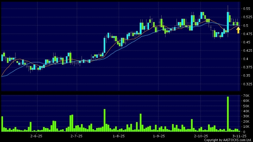 中國動向(03818.HK) +0.010 (+2.062%) 10天移動平均線升穿20天移動平均線,出現黃金交叉。現價報0.500,無升跌,成交量2.09百萬股,成交額1.04百萬。