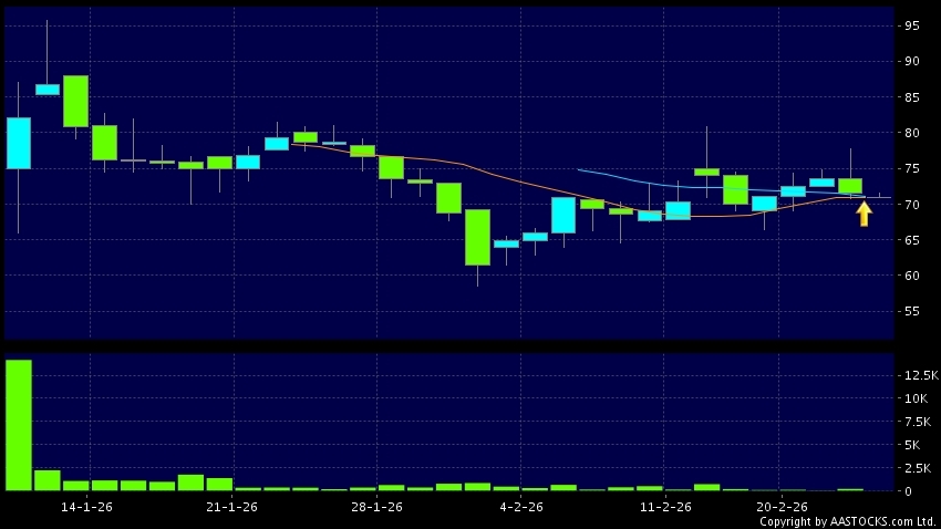 免責聲明:以上金融市場數據、報價、圖表 及/或各種技術分析指標乃根據公開資料分析和演釋自動生成的,僅作參考使用。此類自動生成的內容並不代表AASTOCKS.com Limited的立場。AASTOCKS.com Limited並不保證其準確性、完整性、實時性或者正確性。閣下應諮詢獨立專業意見,以核實定價資料或獲取更詳細的市場信息及須為所有跟隨此類自動生成的內容執行的交易或使用該內容負責。