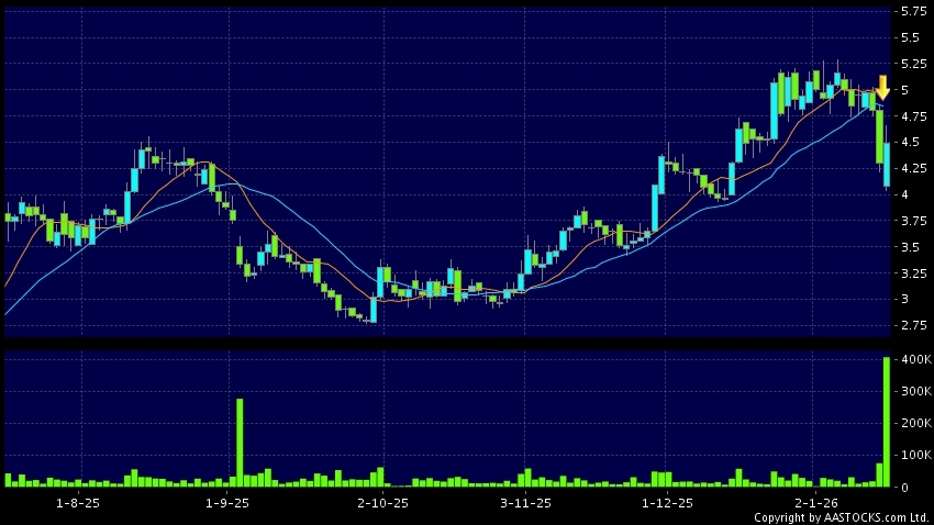 死亡交叉是一個利淡信號,指股價的短期移動平均線跌穿長期移動平均線,例如50天線跌穿250天線,在圖表上構成交叉的形狀。股價通常會下跌形成一個下降趨勢,技術走勢偏軟。(港股報價延遲最少十五分鐘。沽空資料截至 2026-01-26 16:25。)