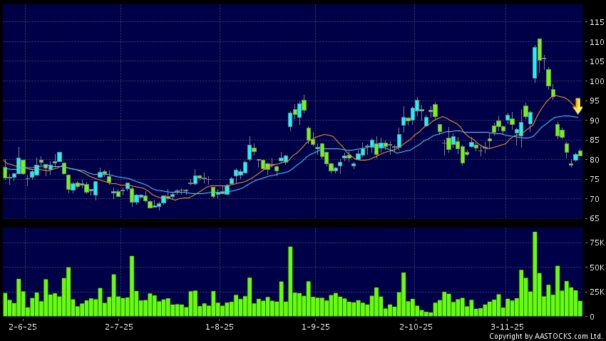 死亡交叉是一個利淡信號,指股價的短期移動平均線跌穿長期移動平均線,例如50天線跌穿250天線,在圖表上構成交叉的形狀。股價通常會下跌形成一個下降趨勢,技術走勢偏軟。(港股報價延遲最少十五分鐘。沽空資料截至 2025-11-25 16:25。)