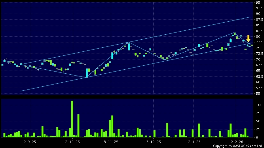 區域突破指股價在過去的一段時間只在一個範圍在內活動,然後股價下跌作出突破,跌穿區域的底部,技術走勢偏軟。(港股報價延遲最少十五分鐘。沽空資料截至 2026-02-11 16:25。)